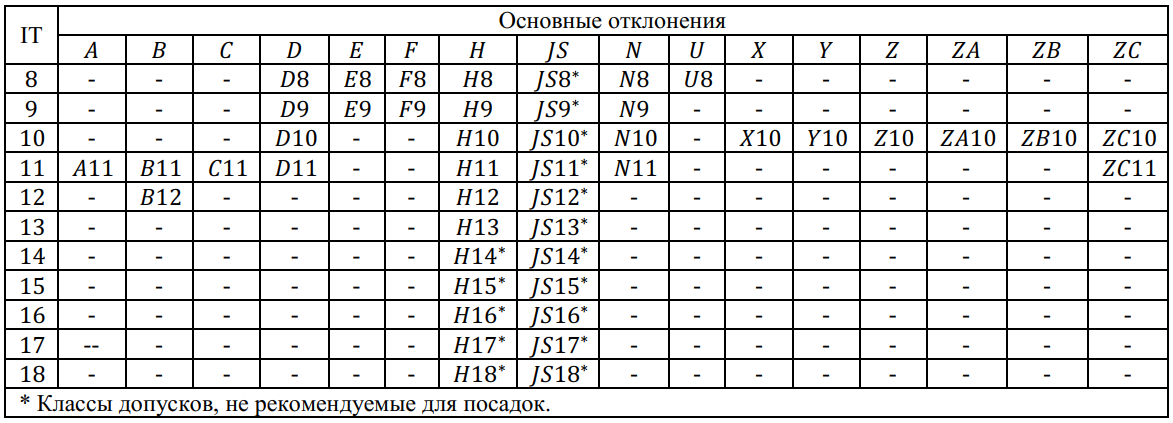 - классы допусков отверстий: H7, H8, H9, H10, H11, H12.