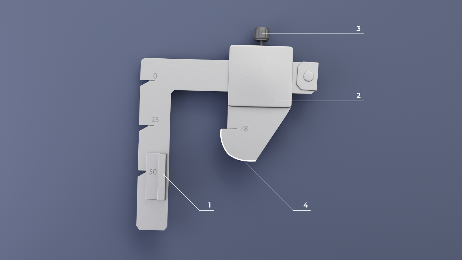 | 1 – упор 2 – движок 3 – винт крепления движка 4 – браковочная грань |