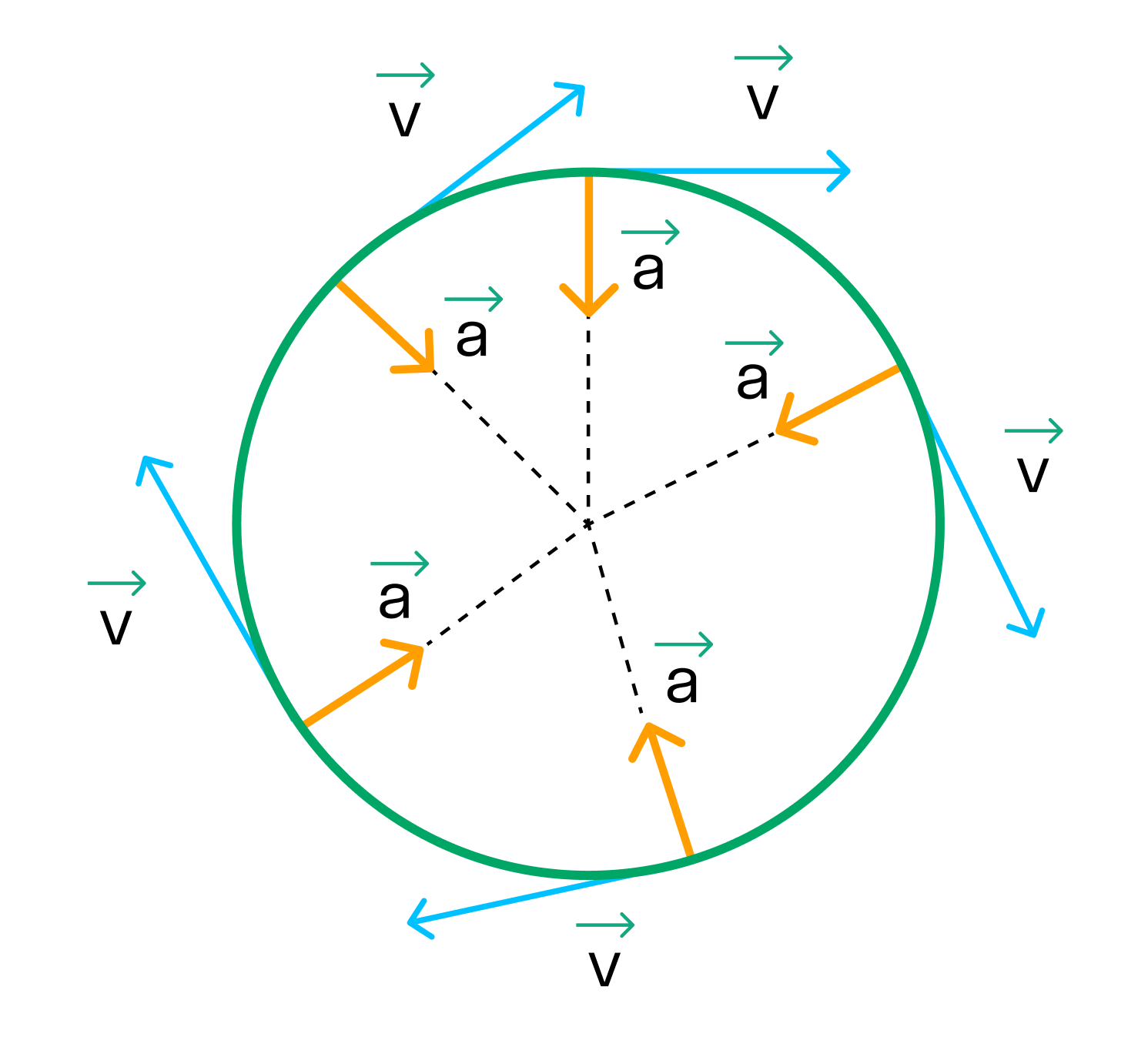 При движении по окружности модуль скорости постоянен, а вот направление скорости постоянно меняется. За изменение направления скорости отвечает центростремительное ускорение.