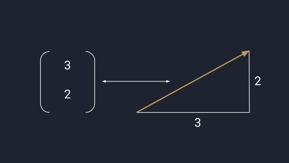 Вектор из трёх чисел отображается в виде точки на плоскости осей Х, Y и Z. Ось Z проводится перпендикулярно осям Х и У — это трёхмерное измерение, где вектор с упорядоченным триплетом чисел: первые два числа указывают на движение по осям Х и У, третье — куда нужно двигаться вдоль оси Z. Каждый триплет создаёт уникальный вектор в пространстве, а у каждого вектора есть только один триплет.