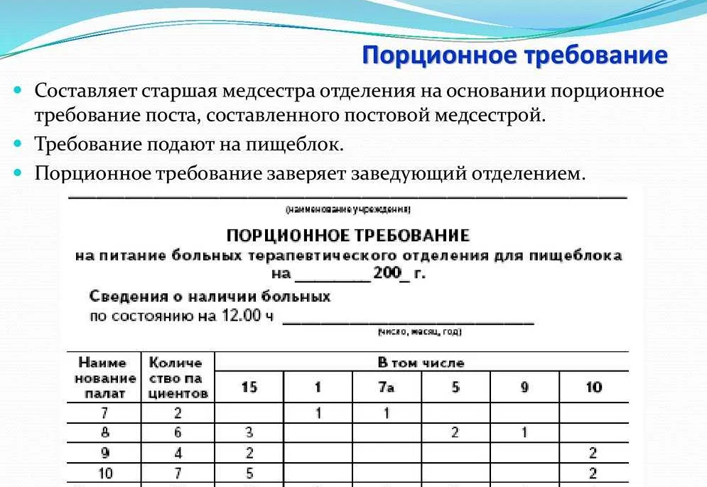 Составление порционного требования для таких пациентов – процесс немаловажный.
