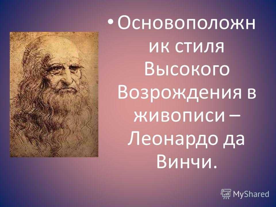 Основоположн ик стиля Высокого Возрождения в живописи – Леонардо да Винчи.