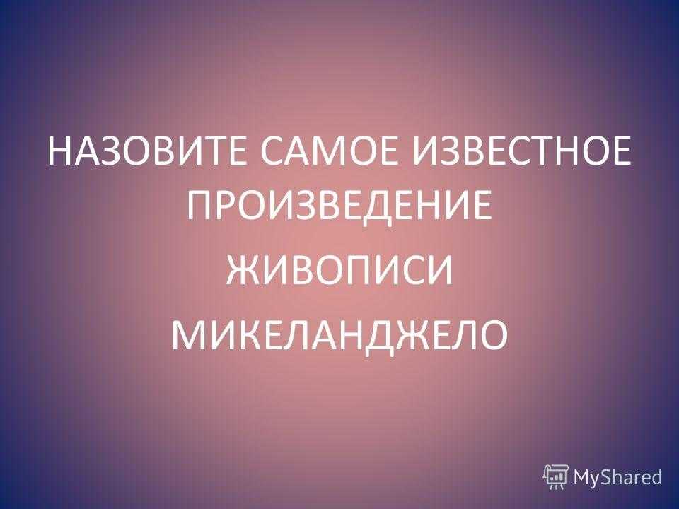 НАЗОВИТЕ САМОЕ ИЗВЕСТНОЕ ПРОИЗВЕДЕНИЕ ЖИВОПИСИ МИКЕЛАНДЖЕЛО