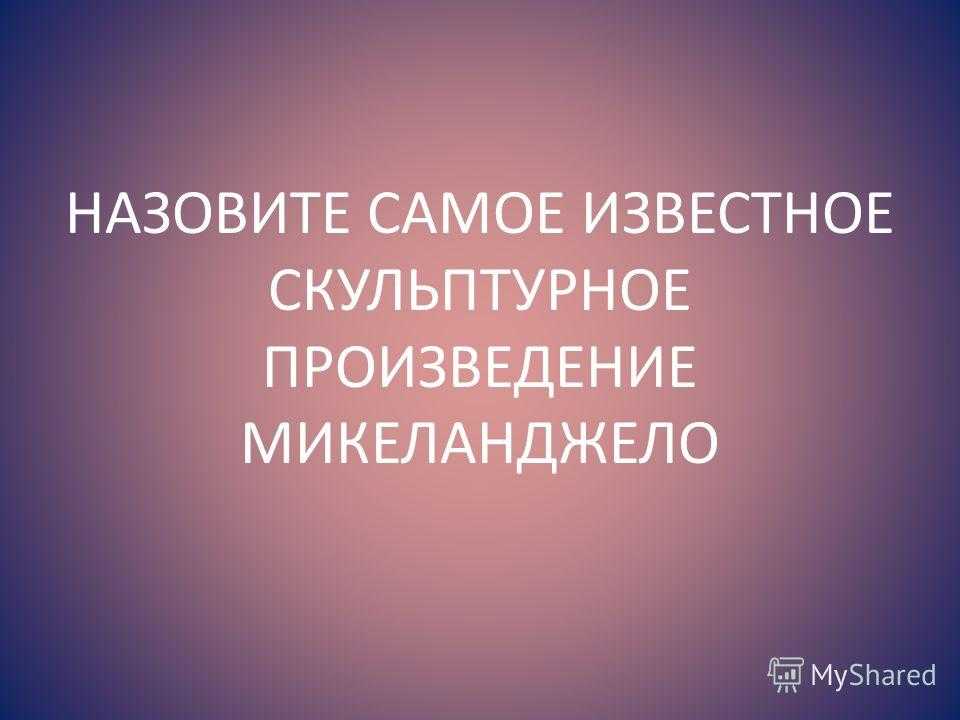НАЗОВИТЕ САМОЕ ИЗВЕСТНОЕ СКУЛЬПТУРНОЕ ПРОИЗВЕДЕНИЕ МИКЕЛАНДЖЕЛО