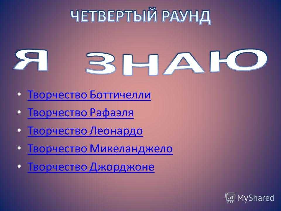 Творчество Боттичелли Творчество Рафаэля Творчество Леонардо Творчество Микеланджело Творчество Джорджоне