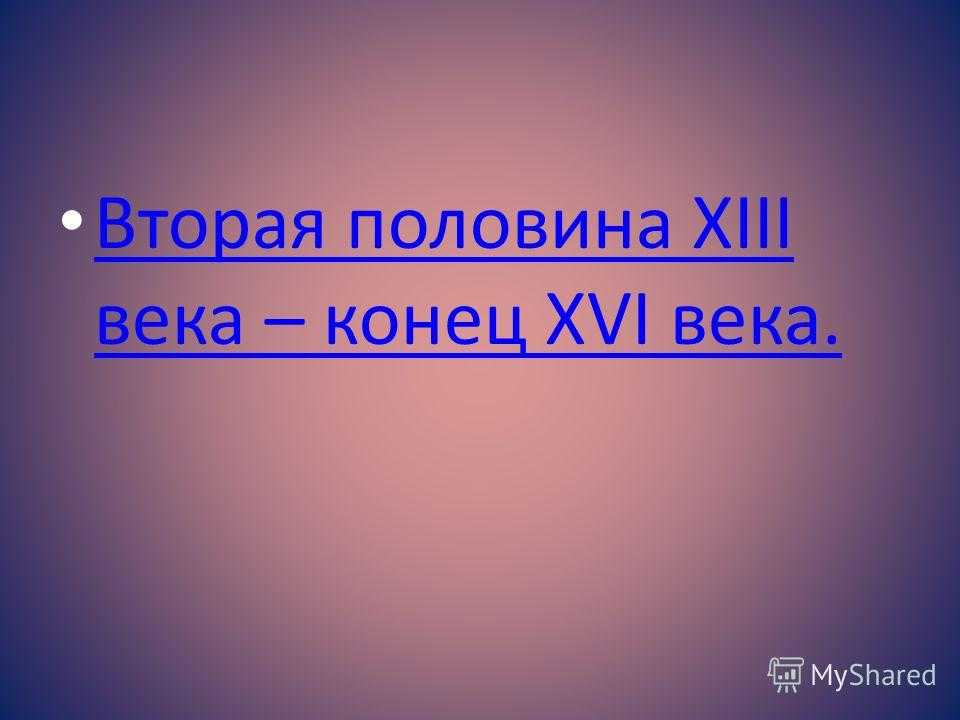 Вторая половина XIII века – конец XVI века. Вторая половина XIII века – конец XVI века.
