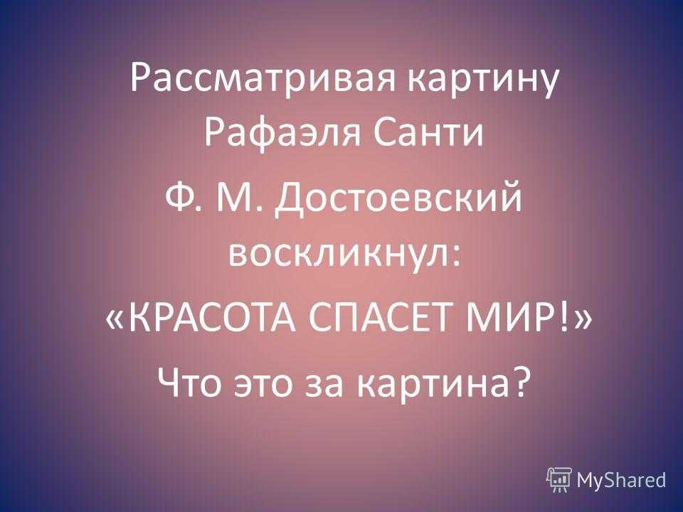 Рассматривая картину Рафаэля Санти Ф. М. Достоевский воскликнул: «КРАСОТА СПАСЕТ МИР!» Что это за картина?