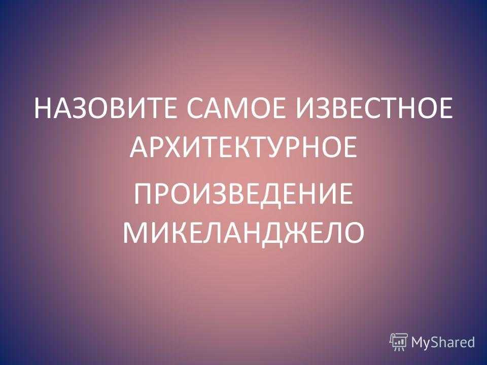 НАЗОВИТЕ САМОЕ ИЗВЕСТНОЕ АРХИТЕКТУРНОЕ ПРОИЗВЕДЕНИЕ МИКЕЛАНДЖЕЛО