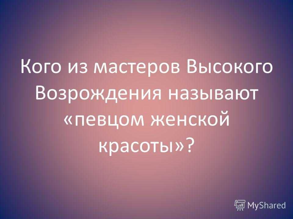 Кого из мастеров Высокого Возрождения называют «певцом женской красоты»?